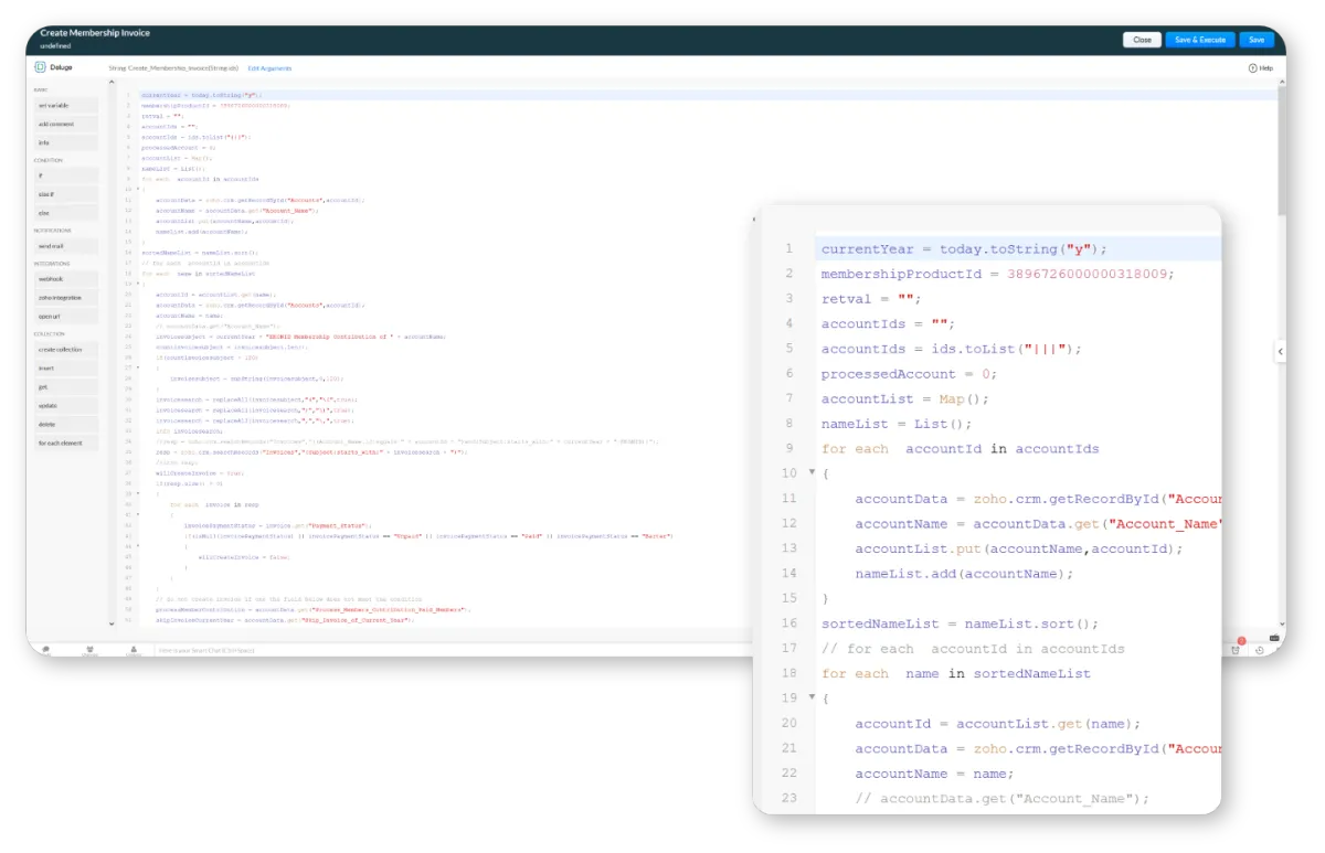 Clearscope Solutions offers scripting services to tailor the Zoho platform to your business process. Our team of experts leverages their knowledge of Zoho’s scripting language to automate tasks, build workflows, and integrate third-party applications.